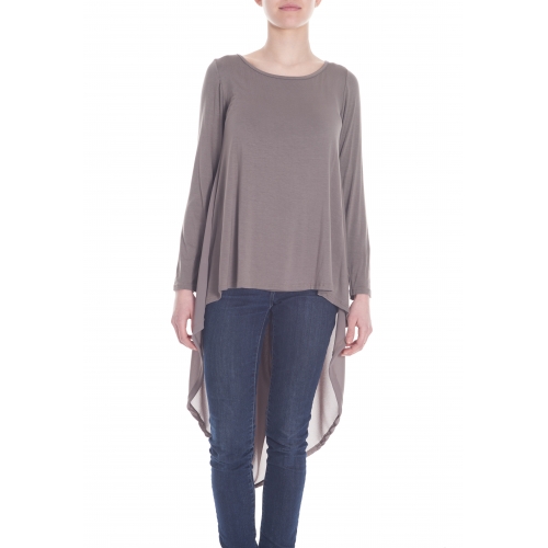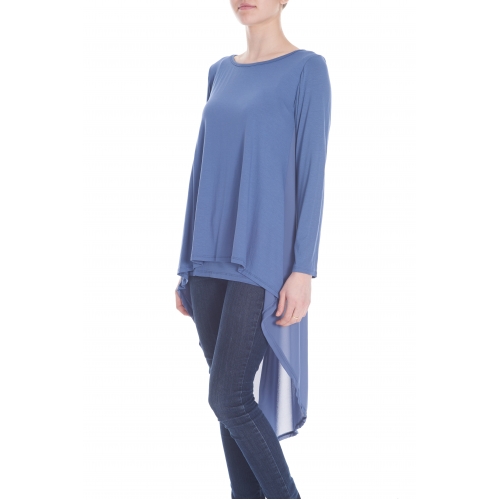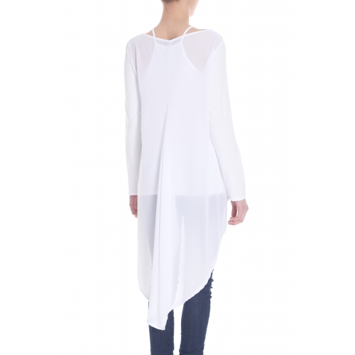 Long sleeved hi-lo, chiffon draped top/tunic. Soft buttery material with a slight scoop neckline. Also comes with matching spaghetti strap camisole. Approximately 45 inches from neckline to bottom.